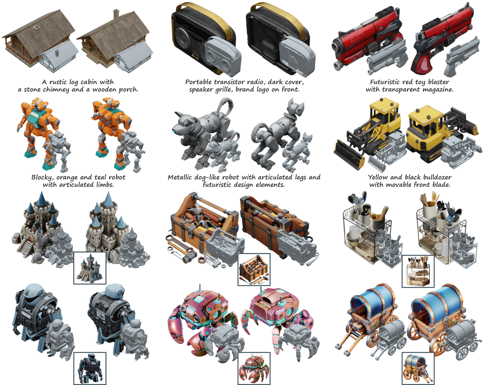 A drawback is that it doesn't yet completely follow instructions (input guidance) perfectly, and perhaps because the default branch of the decoder is GSs, the quality of the generated mesh isn't always excellent.